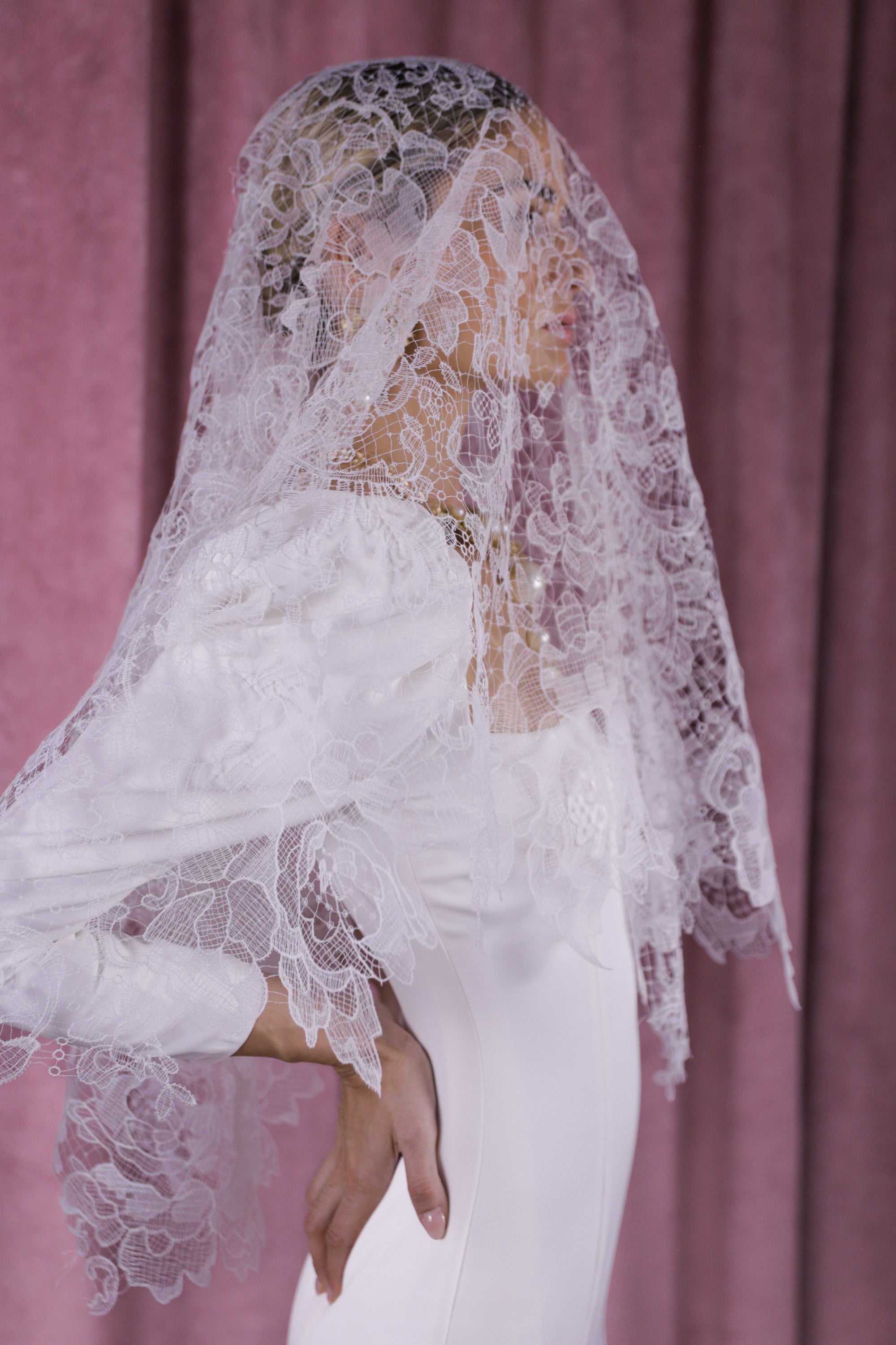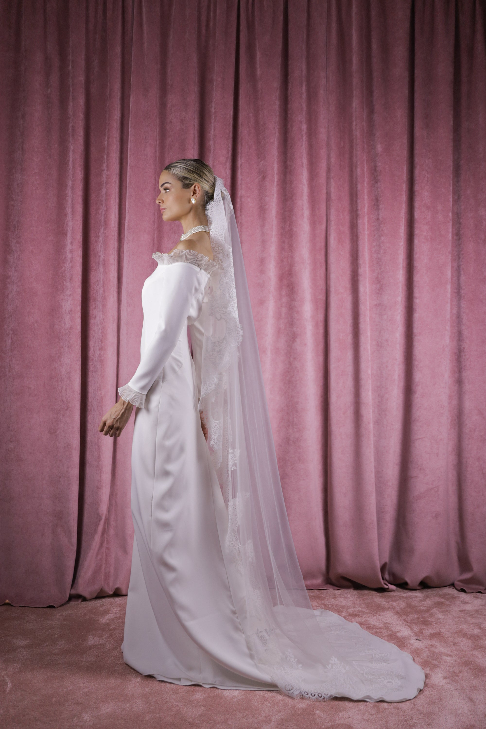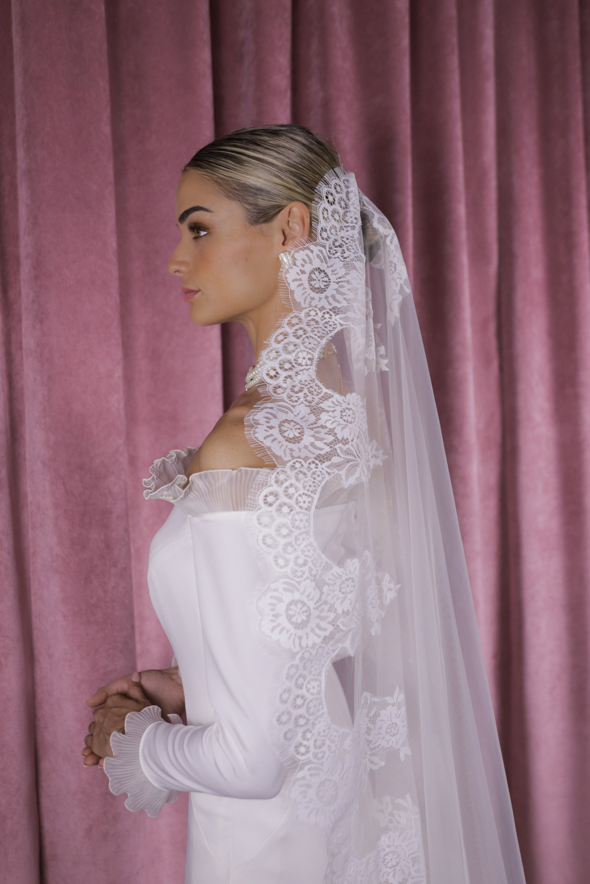 Velo de perlas y blonda