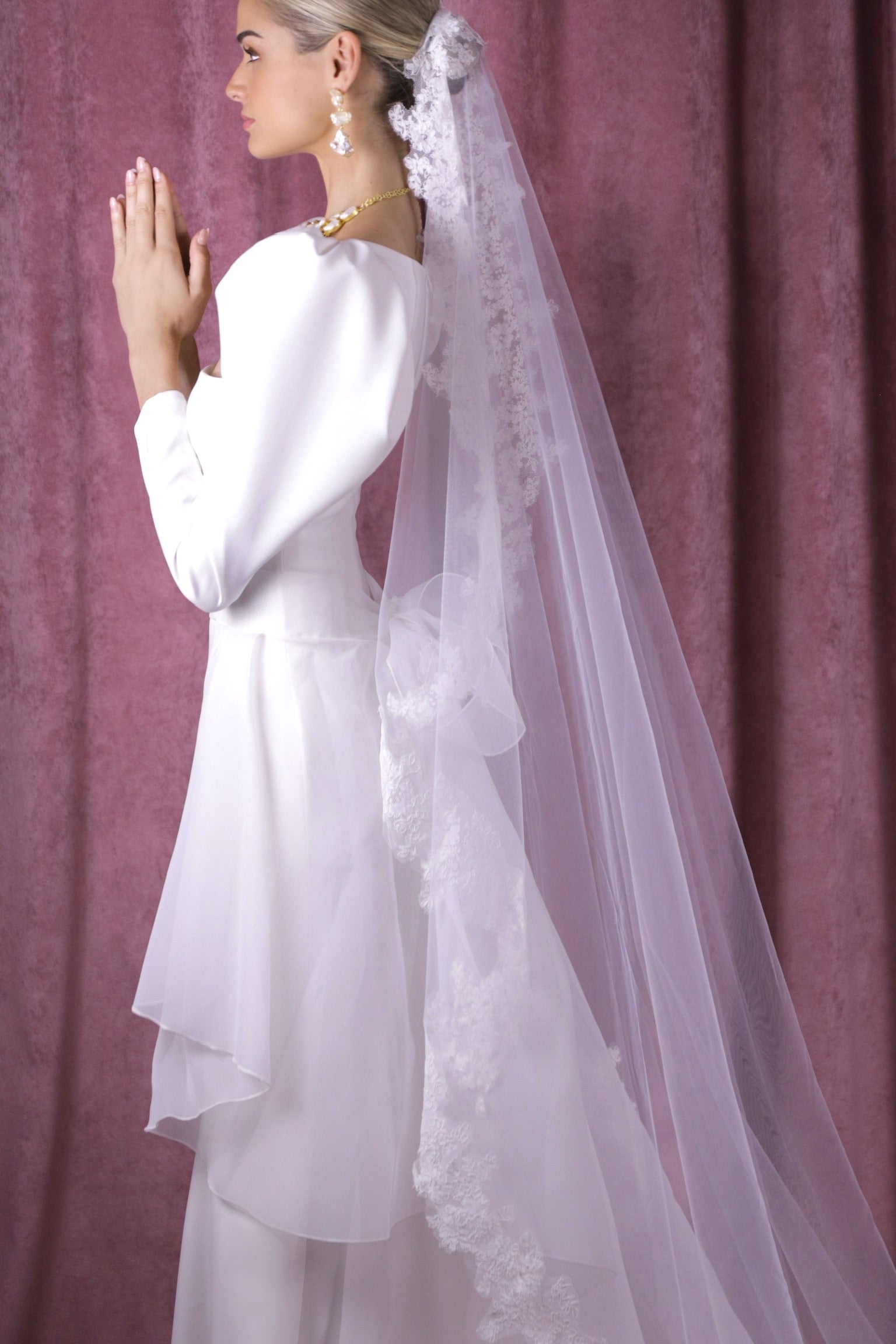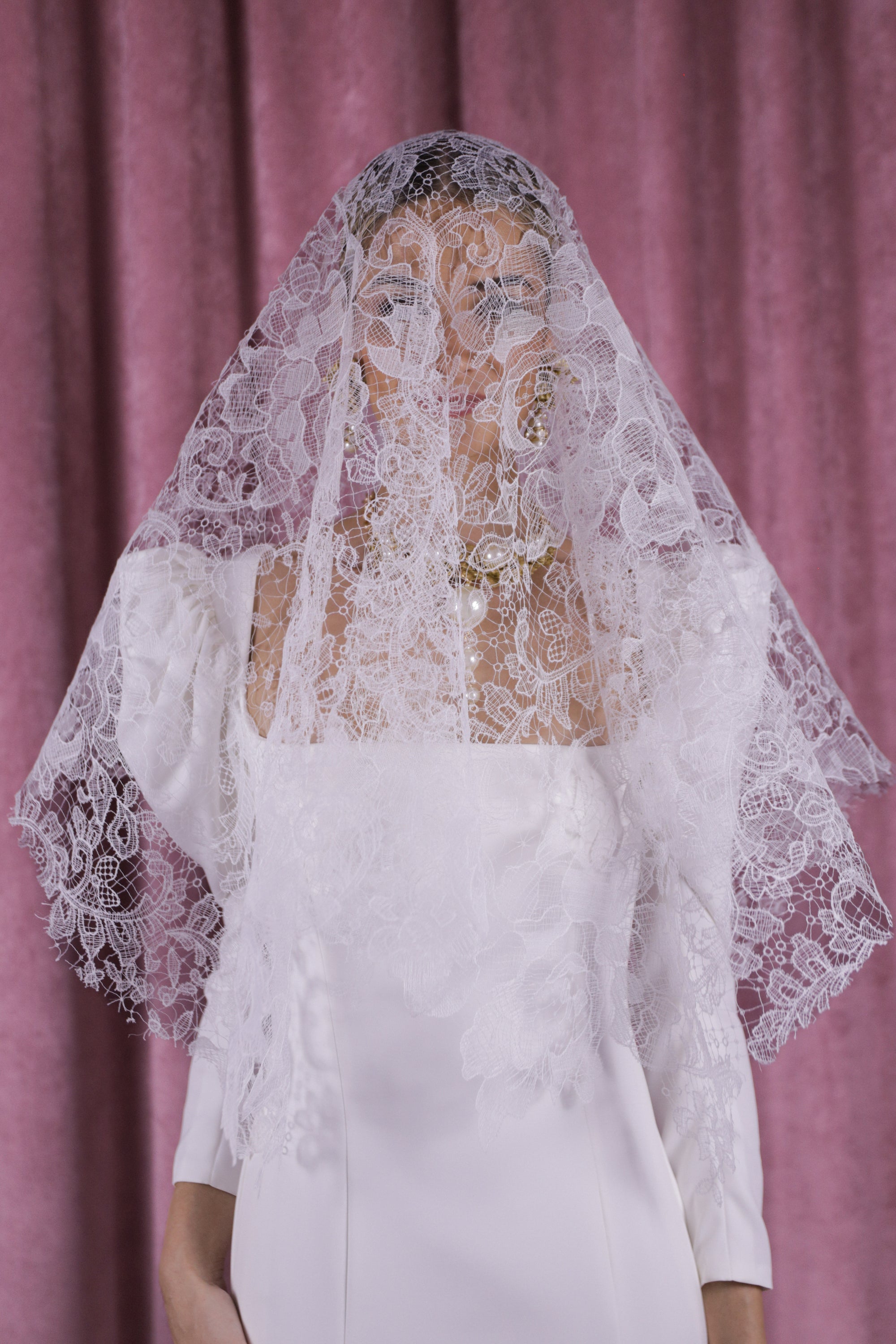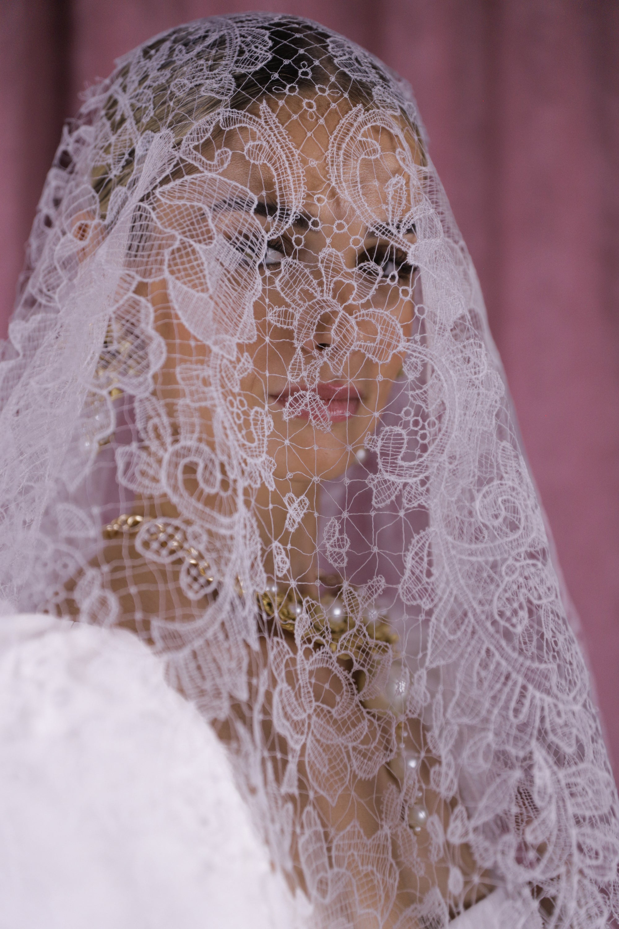 Velo de perlas y blonda