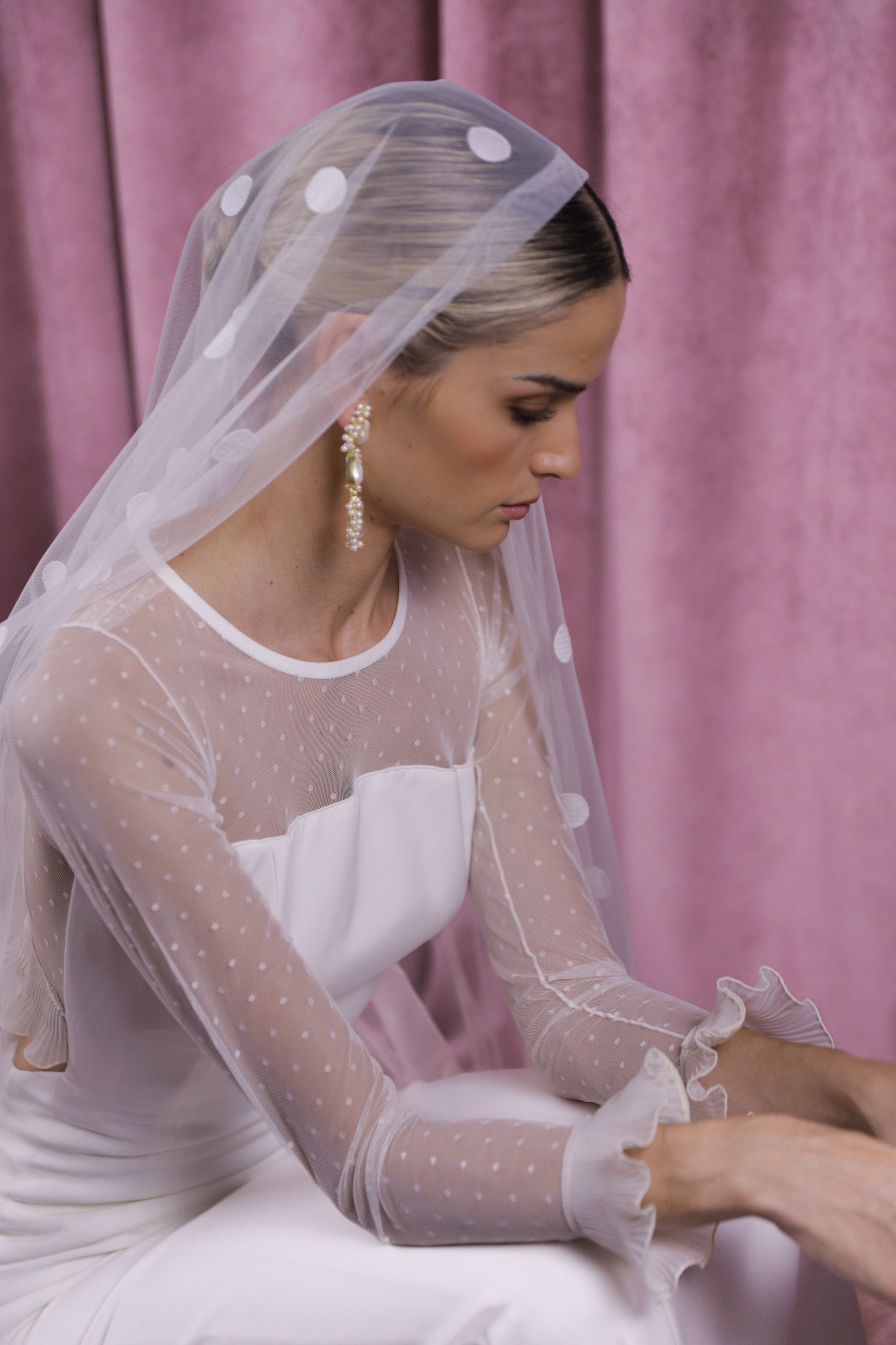 Velo de novia plumeti de lunares
