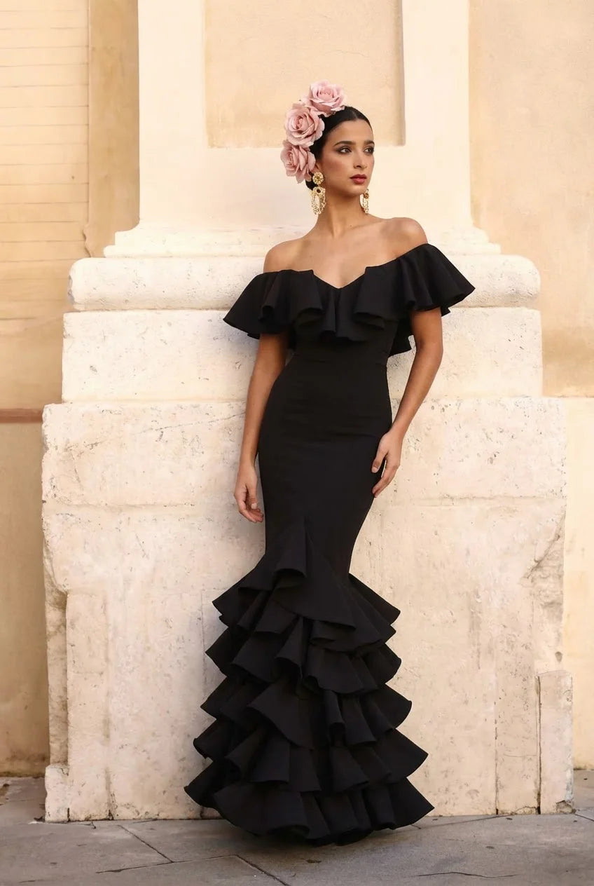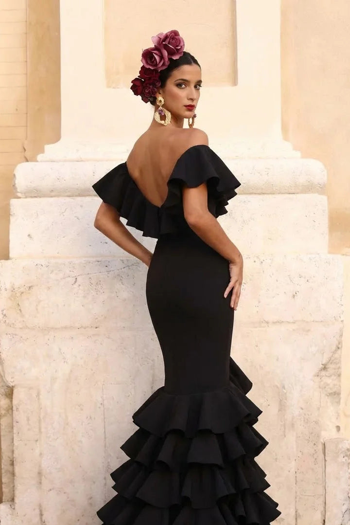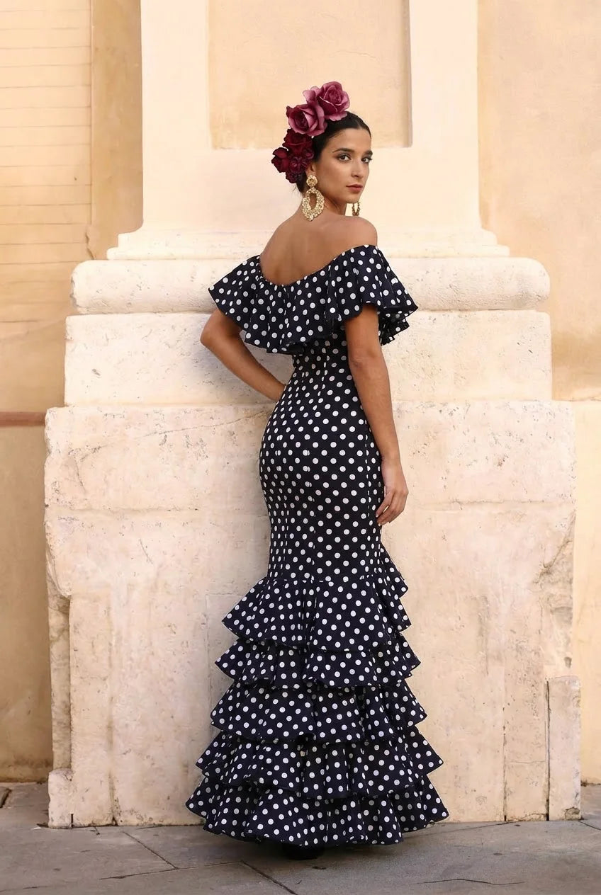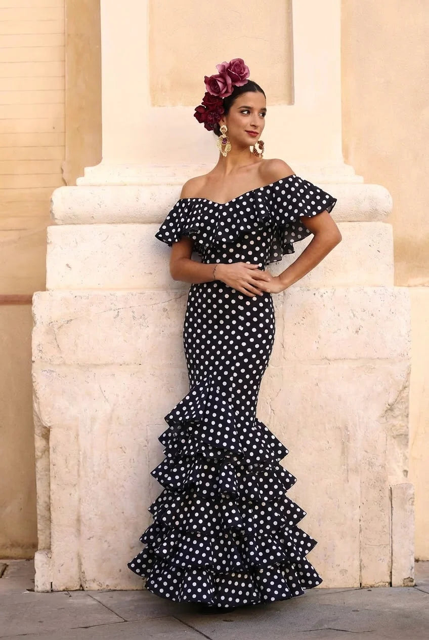 Vestido Flamenca Teresa Negro Lunar Blanco