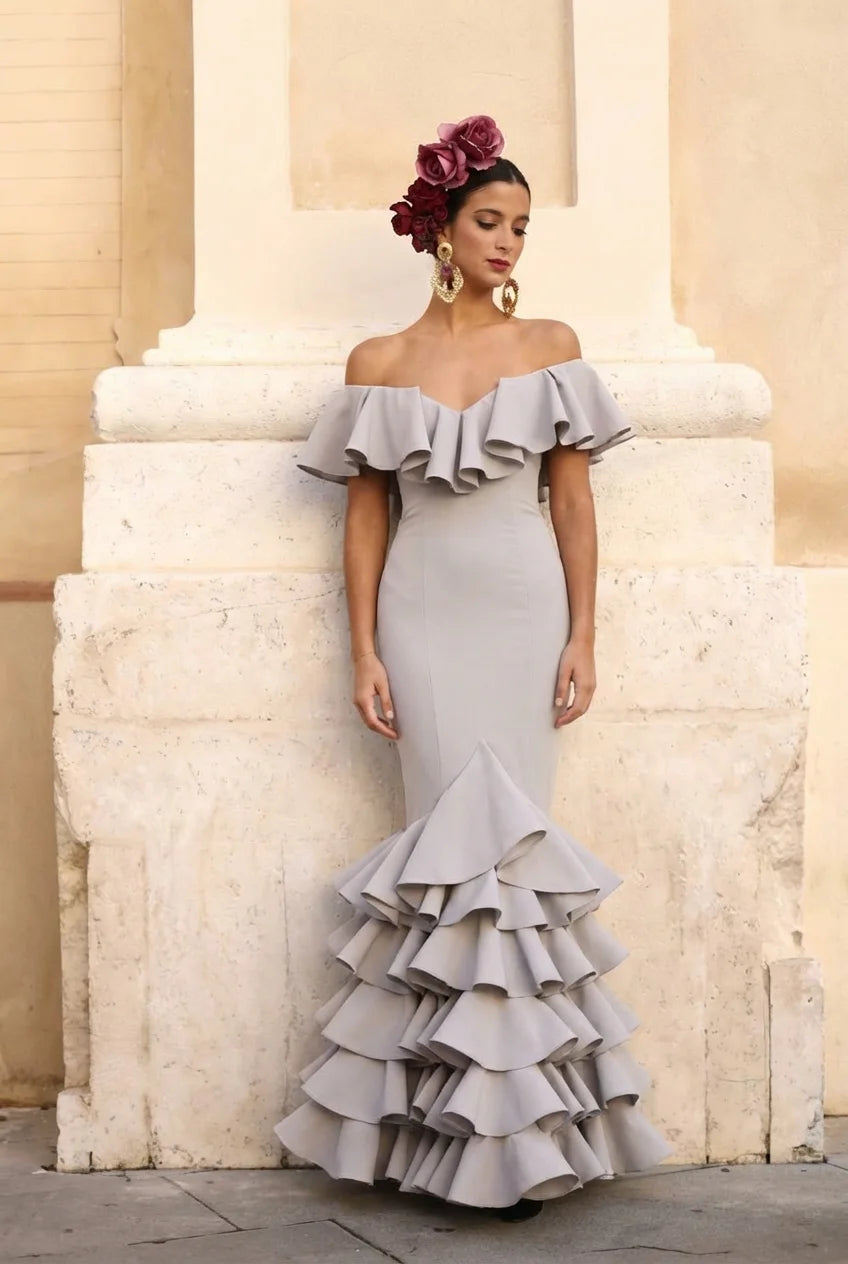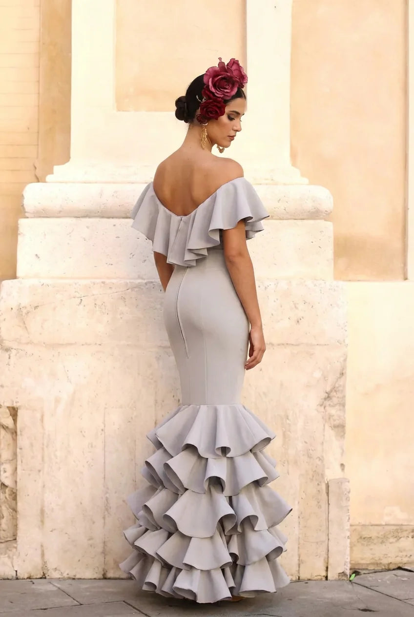 Vestido Flamenca Teresa Blanco Lunar Negro