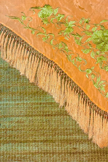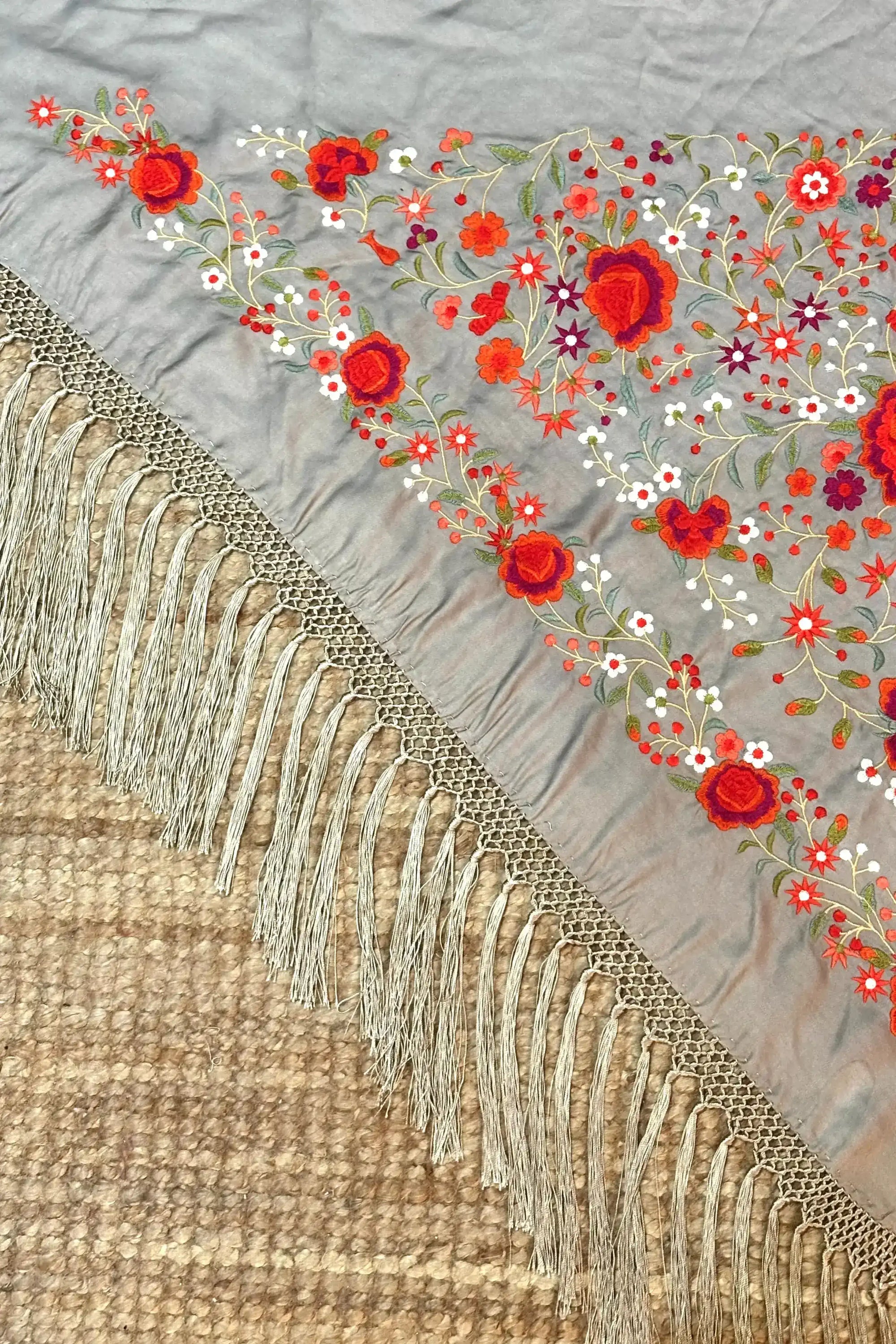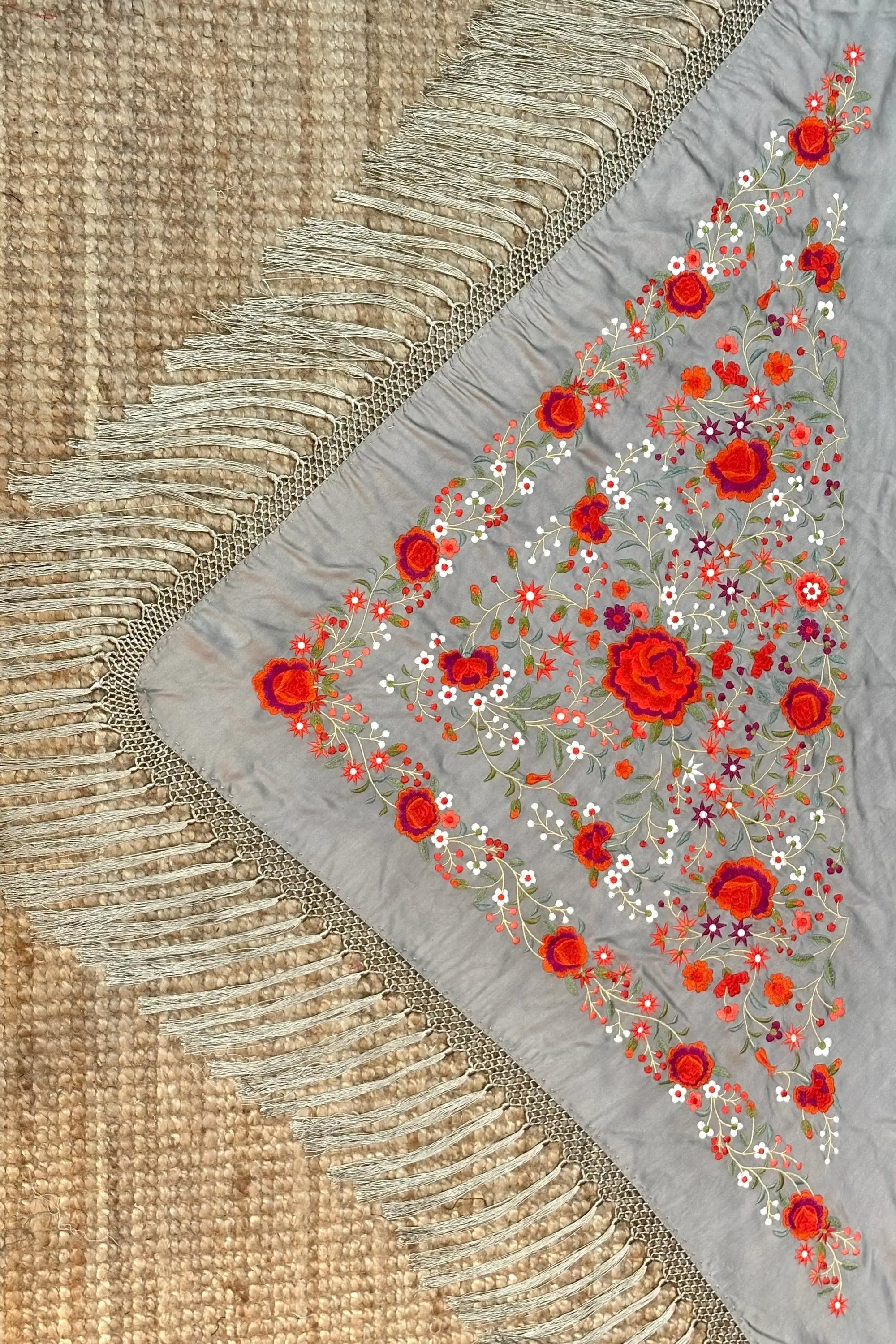 Mantoncillo Flamenca Bordado Seda Uvas Melocotón