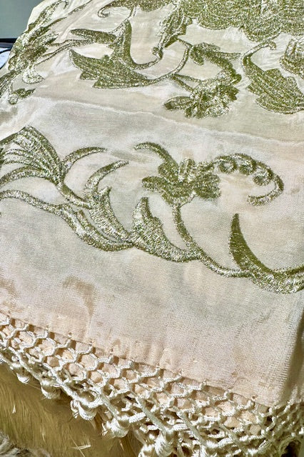 Mantoncillo Flamenca Bordado Seda Uvas Verde