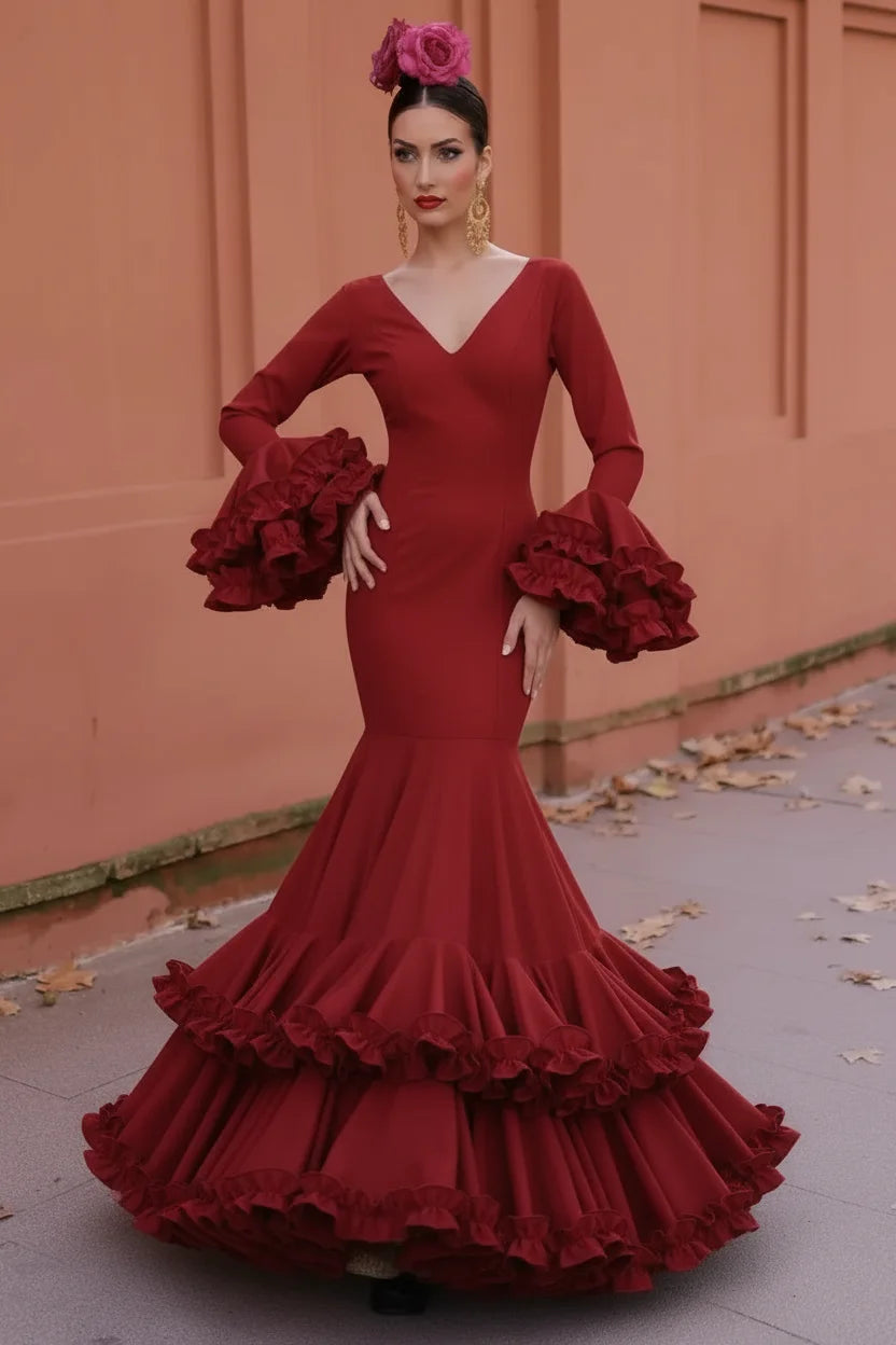 Vestido Flamenca Sol Burdeos
