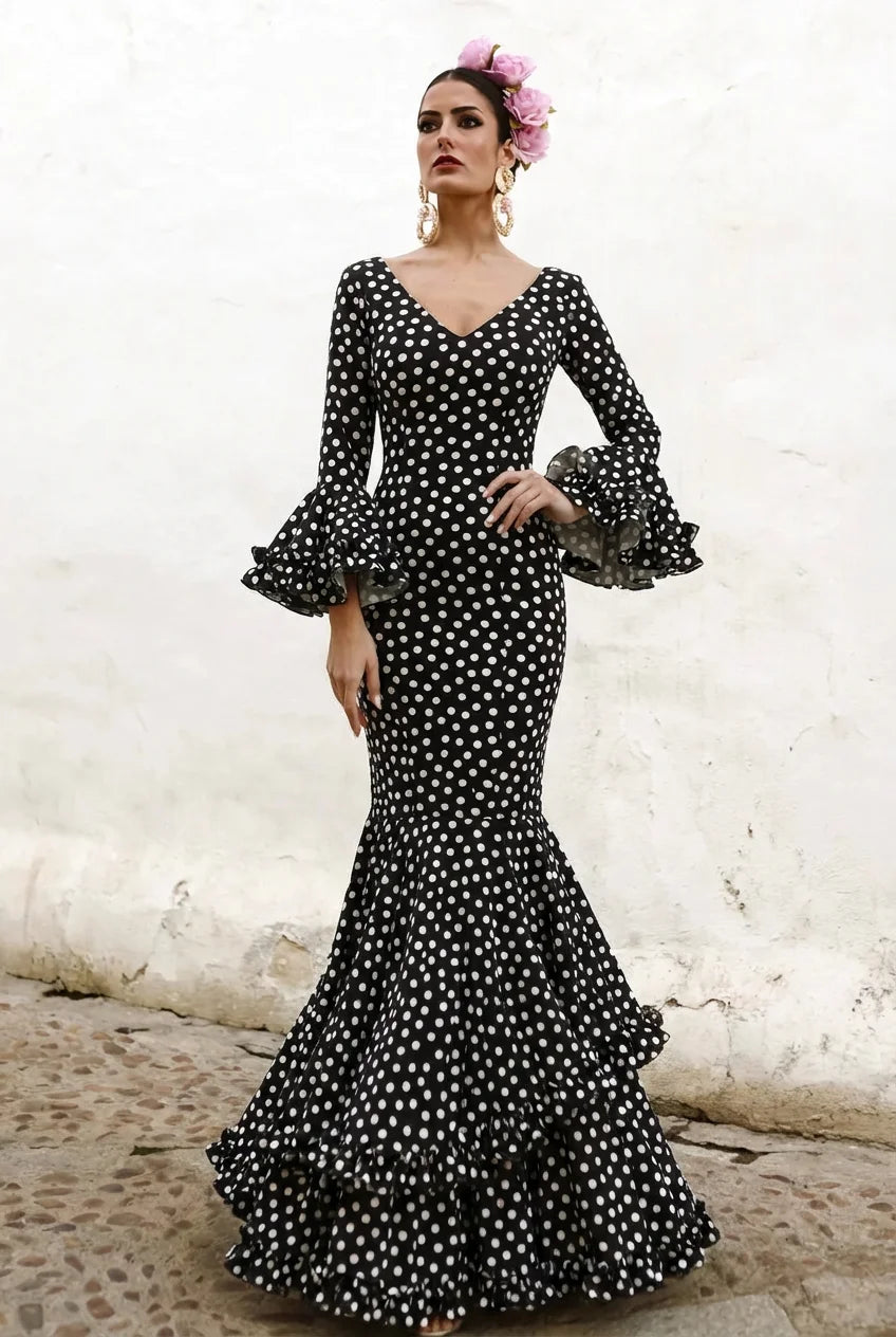Vestido Flamenca Manuela Negro Lunar Blanco