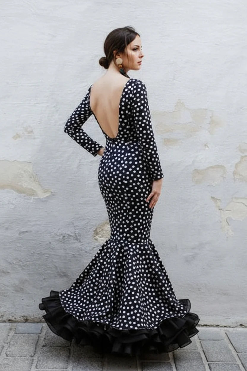 Vestido Flamenca Manuela Negro Lunar Blanco