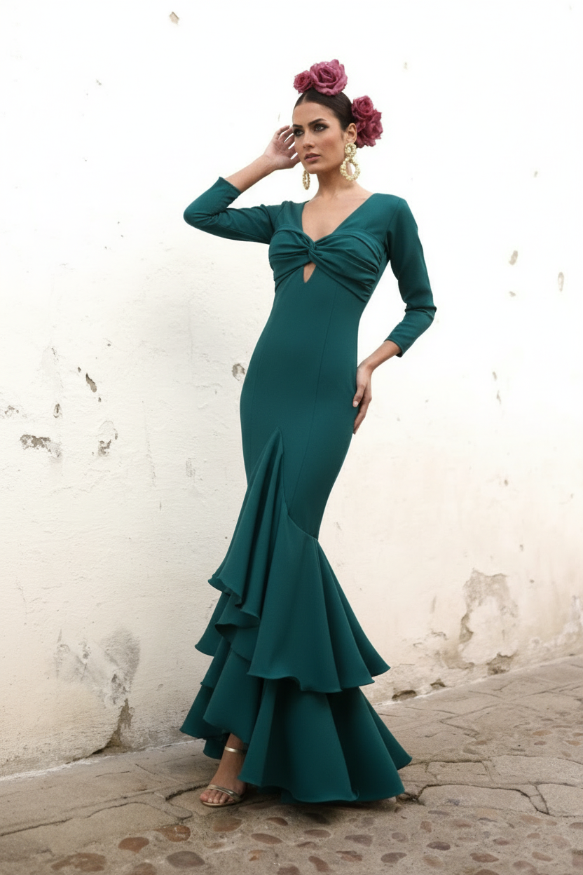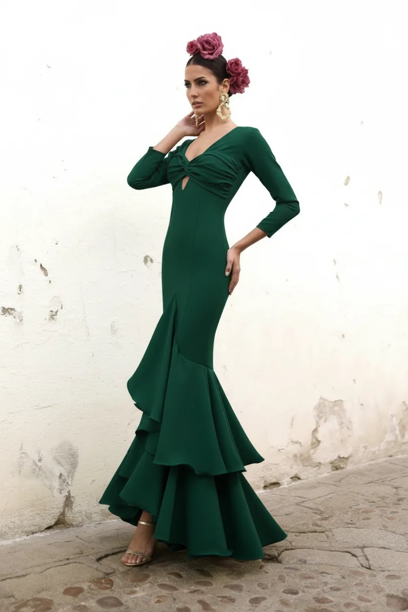 Vestido Flamenca Celine Verde Botella